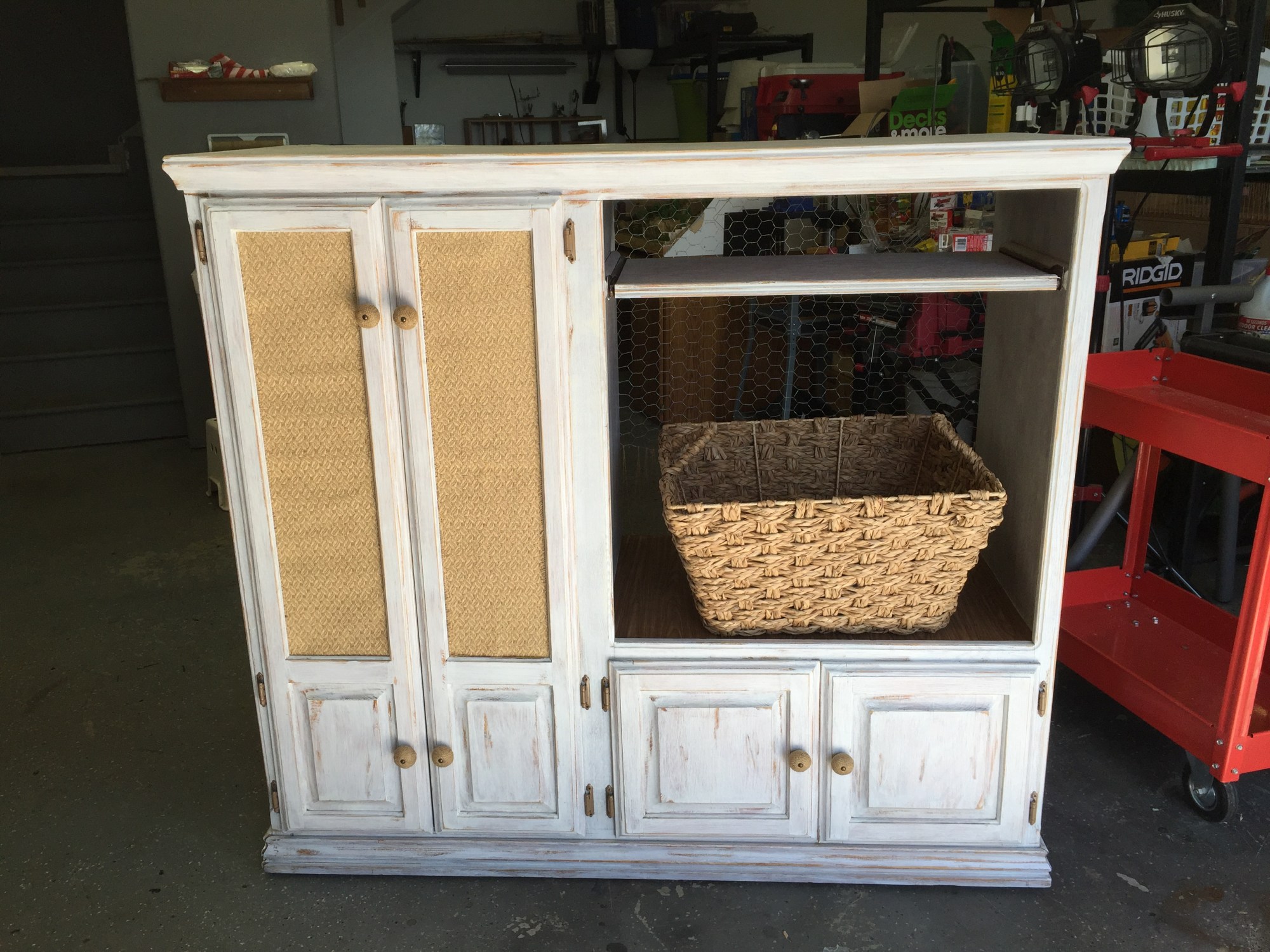 Repurposed 1970’s tv cabinet, perfect for linen storage or a child’s bedroom.
